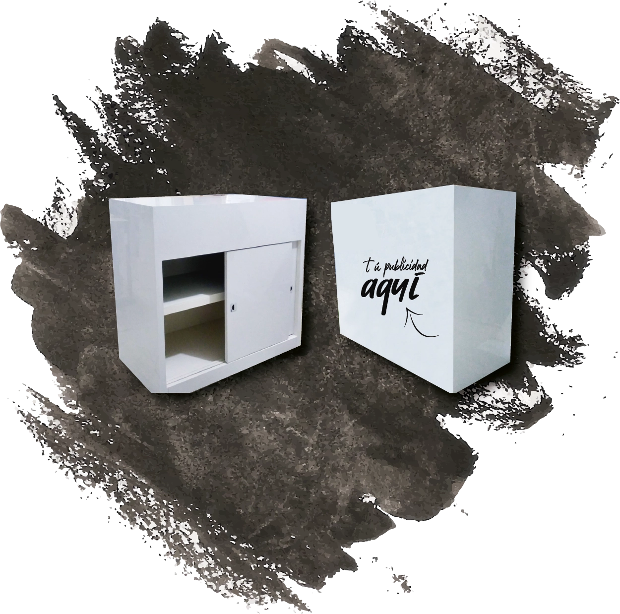 Con bodega de seguridad en la parte trasera y con espacio para publicidad, con medidas de 86 x 50 cm y 50 cm de profundidad