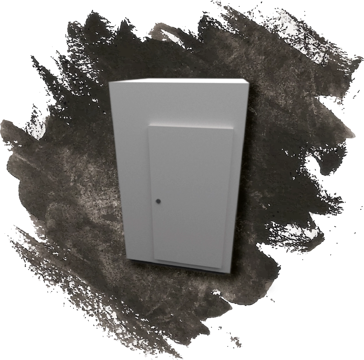 De madera, recubierto con poliestireno blanco y con bodega de seguridad y medidas de 50 x 86 cm y 50 cm de profundidad